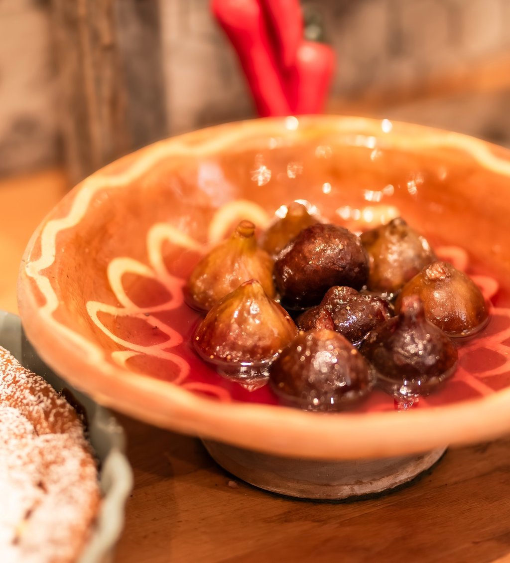 - Banon rôtie au four, miel de Valensole, pignons et roquette. 12eu.